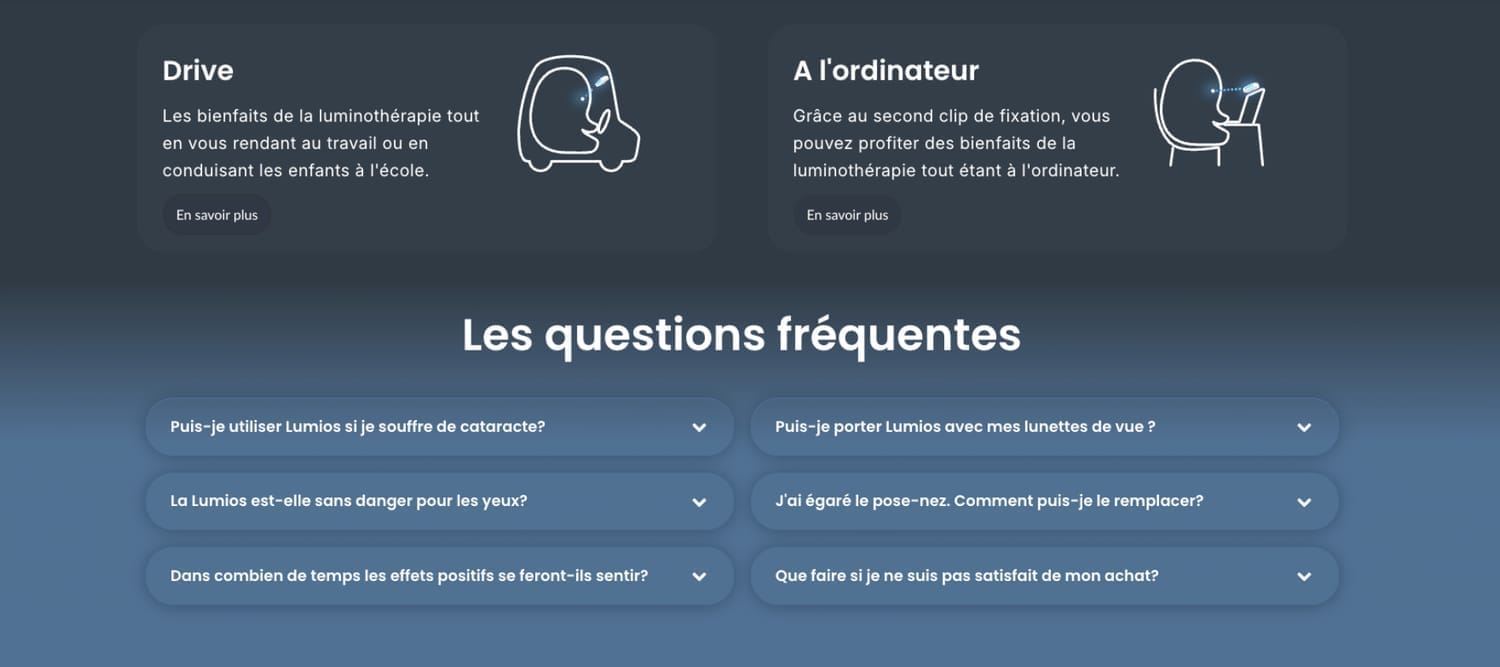 Format scannable pour comprendre la valeur en 5 secondes. Icônes, titres courts, descriptions précises. Parfait pour le cerveau moderne.